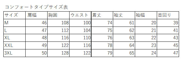 コンフォートタイプのデザインの特徴▶肩幅と袖ぐりを広くし動きやすさを確保します。▶ウエストは+10〜20cmゆとりがあります。▶腕の太さに合わせて袖幅を太くしています。▶着丈は長めで腹部の大きさをカバーします。